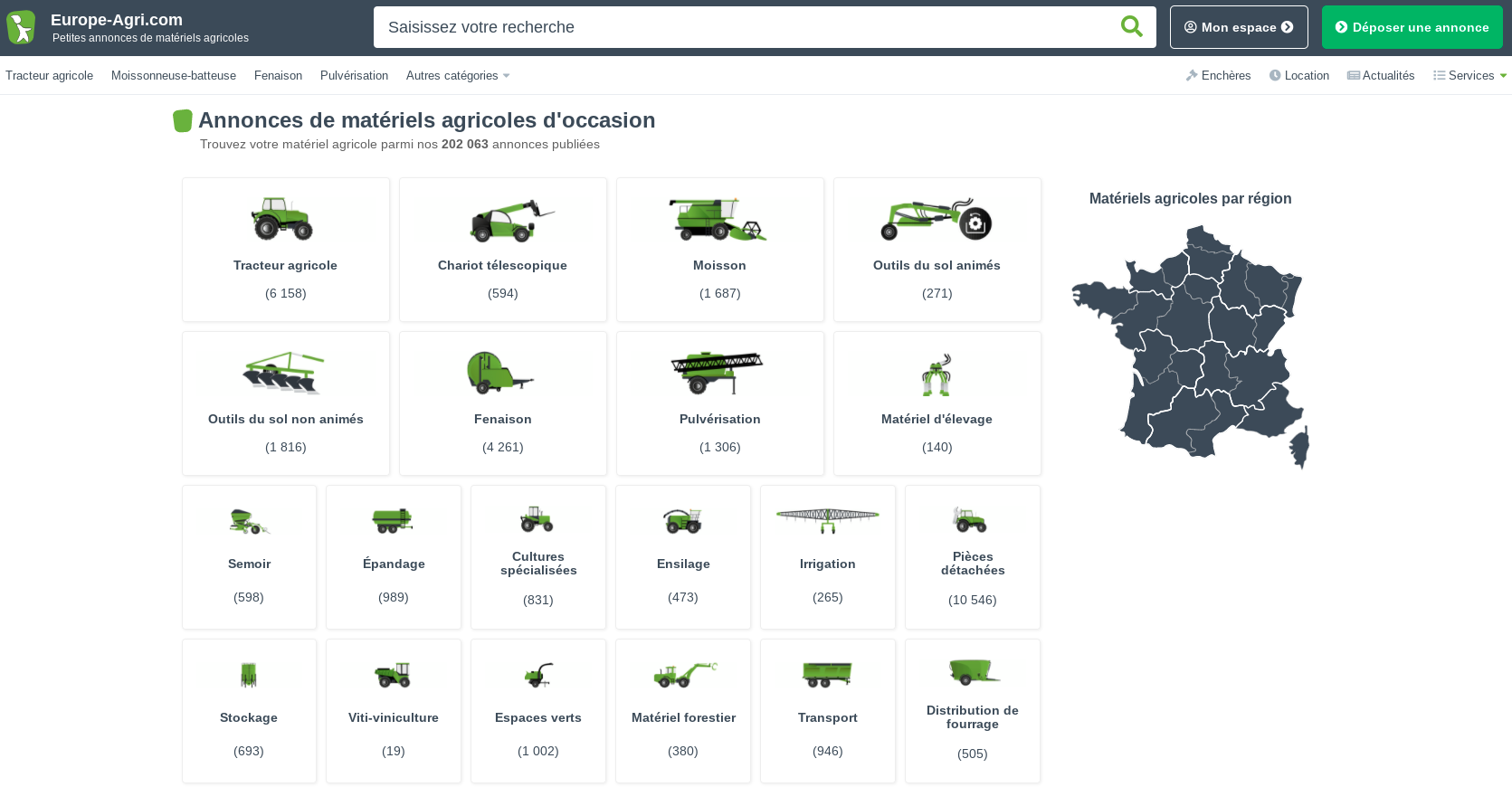 Mit mehr als 160.000 Anzeigen online und über 3 Millionen potenziellen Käufern jeden Monat ist Europe-Agri.com die Referenz auf dem Markt für landwirtschaftliche Gerätschaften in Frankreich!