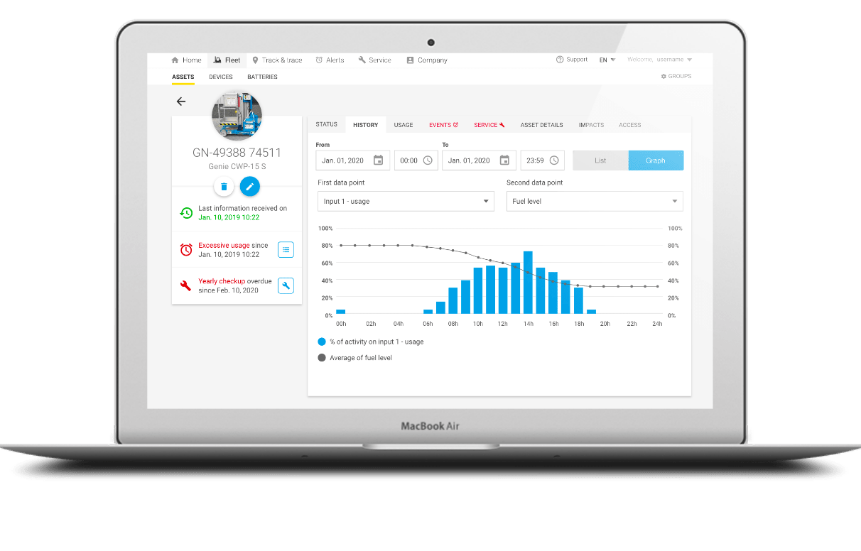 Gem One ermöglicht es Ihnen, Ihr Telematikgerät gemäß Ihren Anforderungen anzupassen. Sie können Ihre Ausrüstung, den Bediener, wann die Wartung fällig ist, und von Echtzeitdaten profitieren, um genaue Statistiken zu erhalten.