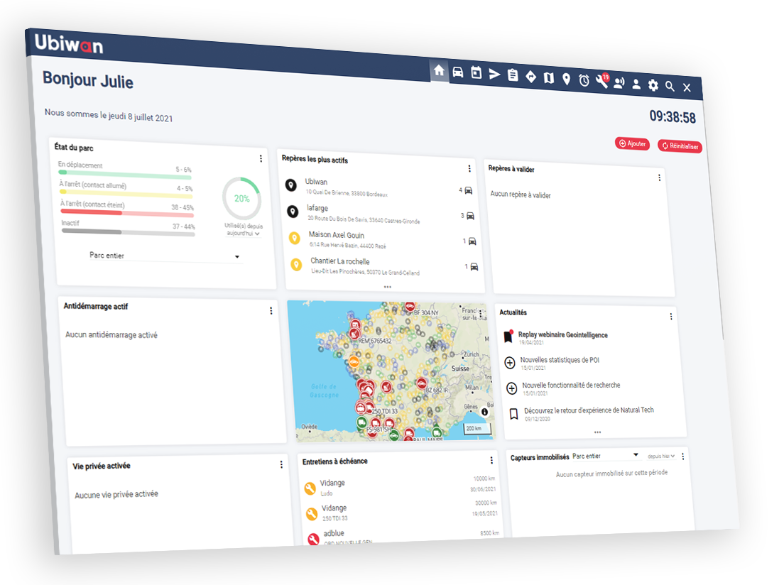 Die Ubiwan-Anwendung ist eine wirklich modulare Business-Software, mit der Sie Ihre Fahrzeugflotte verwalten und Ihre Geräte einfach aus der Ferne warten können!