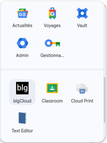 Si vous êtes sur une application Google, vous pouvez retrouver "blgCloud" depuis la liste des applications.